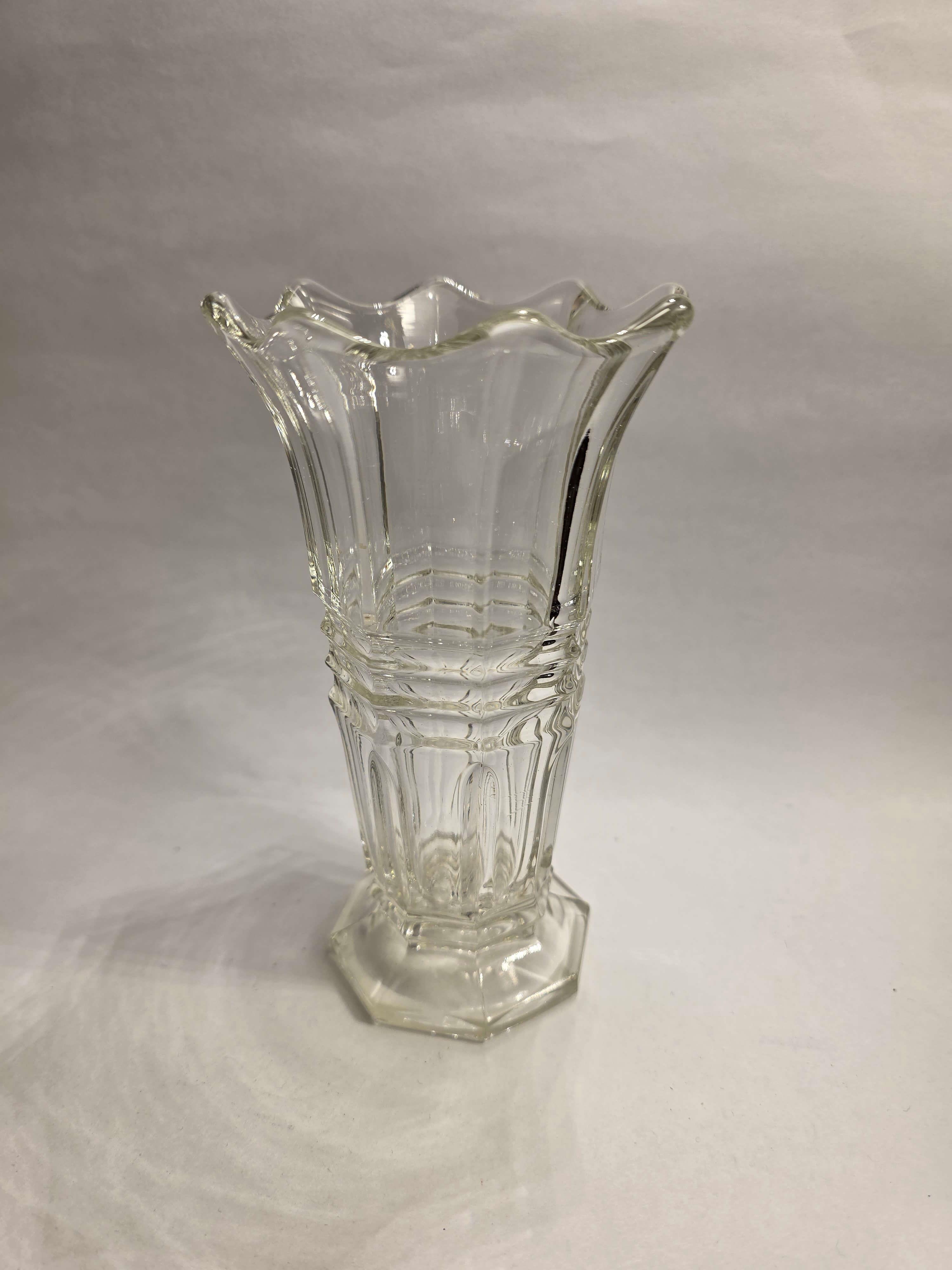 16 cm yüksekliğinde cam vazo.