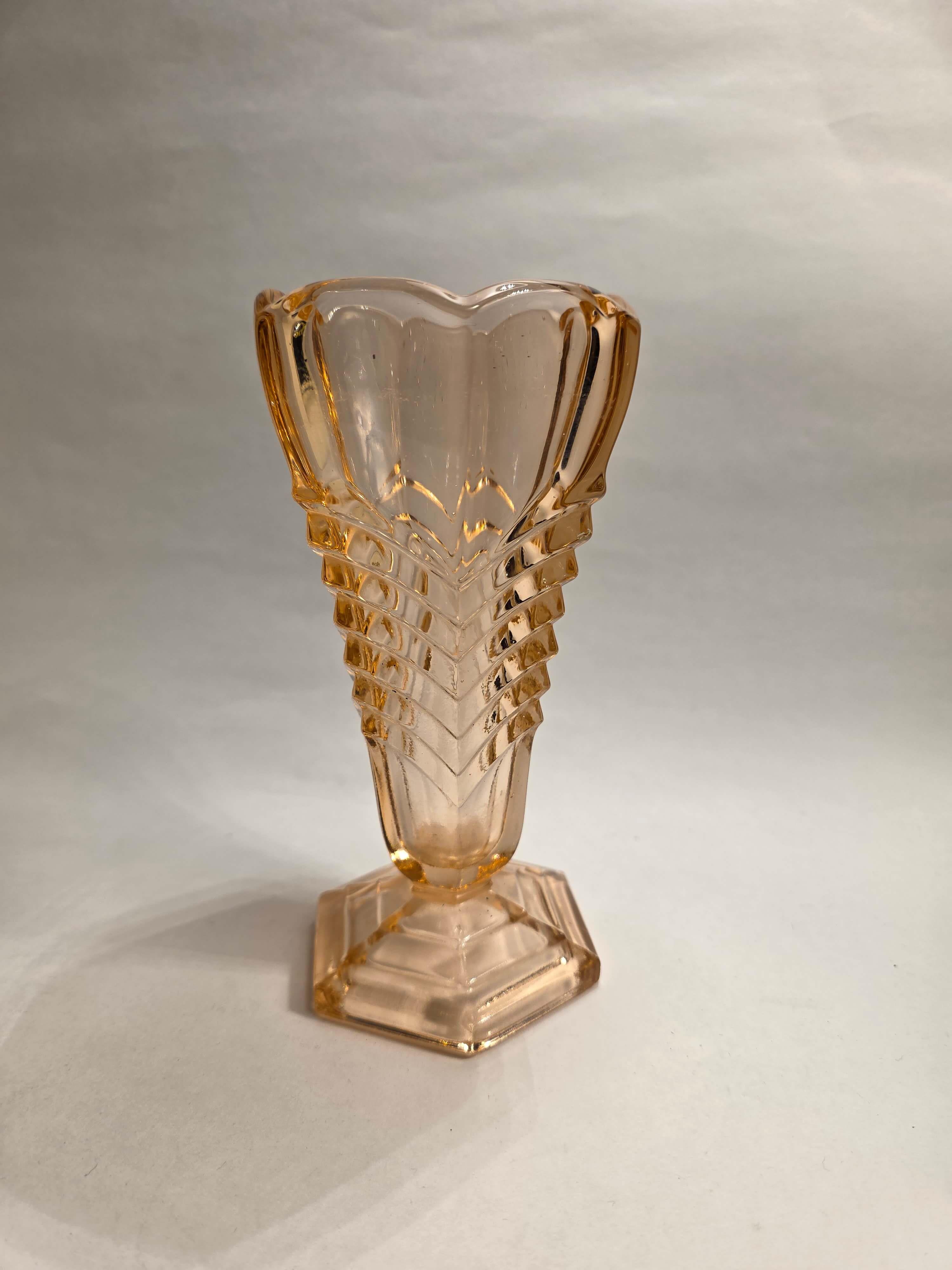 16,5 cm yüksekliğinde, pembe cam vazo.